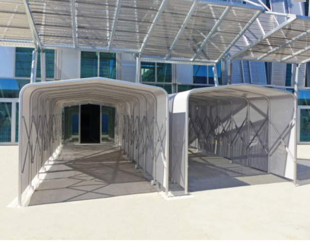 - Makaslı iskelet yapısı sayesinde kolayca açılıp kapanır (elle veya raylı/tekerlekli sistemle).