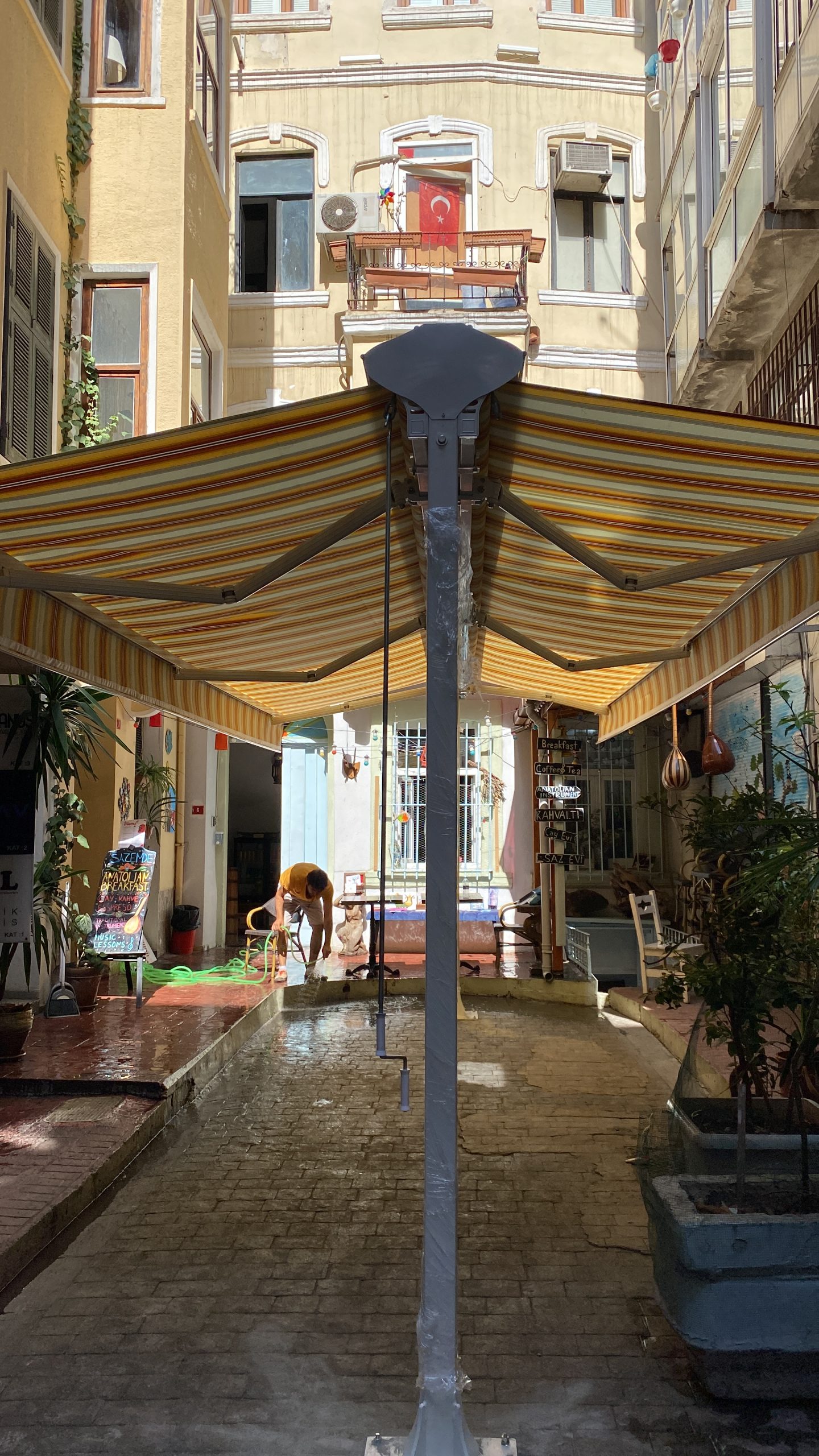 ✔️ Geniş alan gölgelendirme: İki tarafa açılan mafsallı sistem sayesinde büyük alanları kaplama imkânı sağlar.
